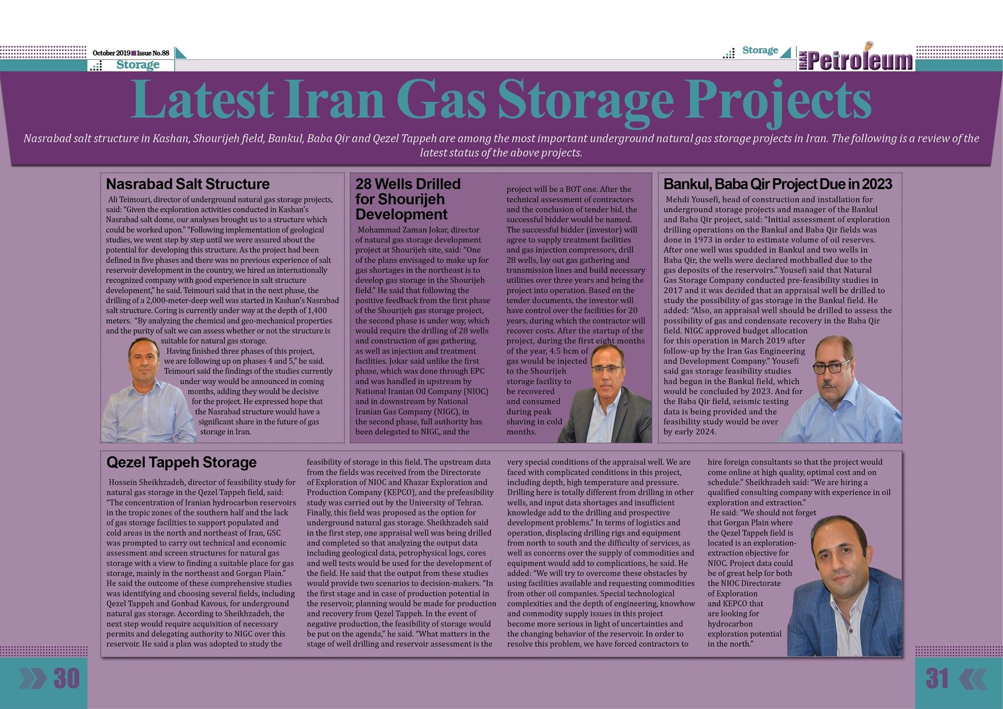 Nasrabad salt structure in Kashan, Shourijeh field, Bankul, Baba Qir and Qezel Tappeh are among the most important underground natural gas storage projects in Iran. The following is a review of the latest status of the above projects.